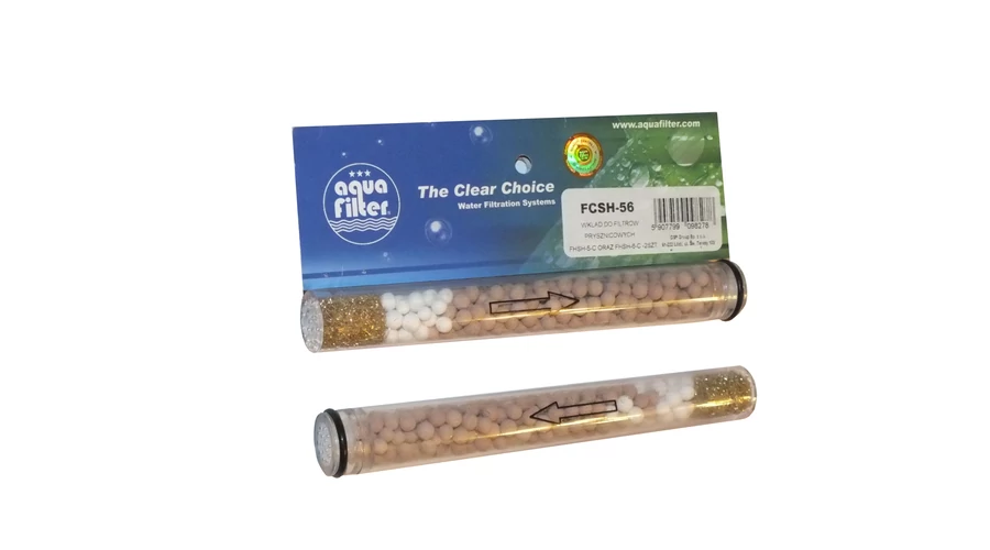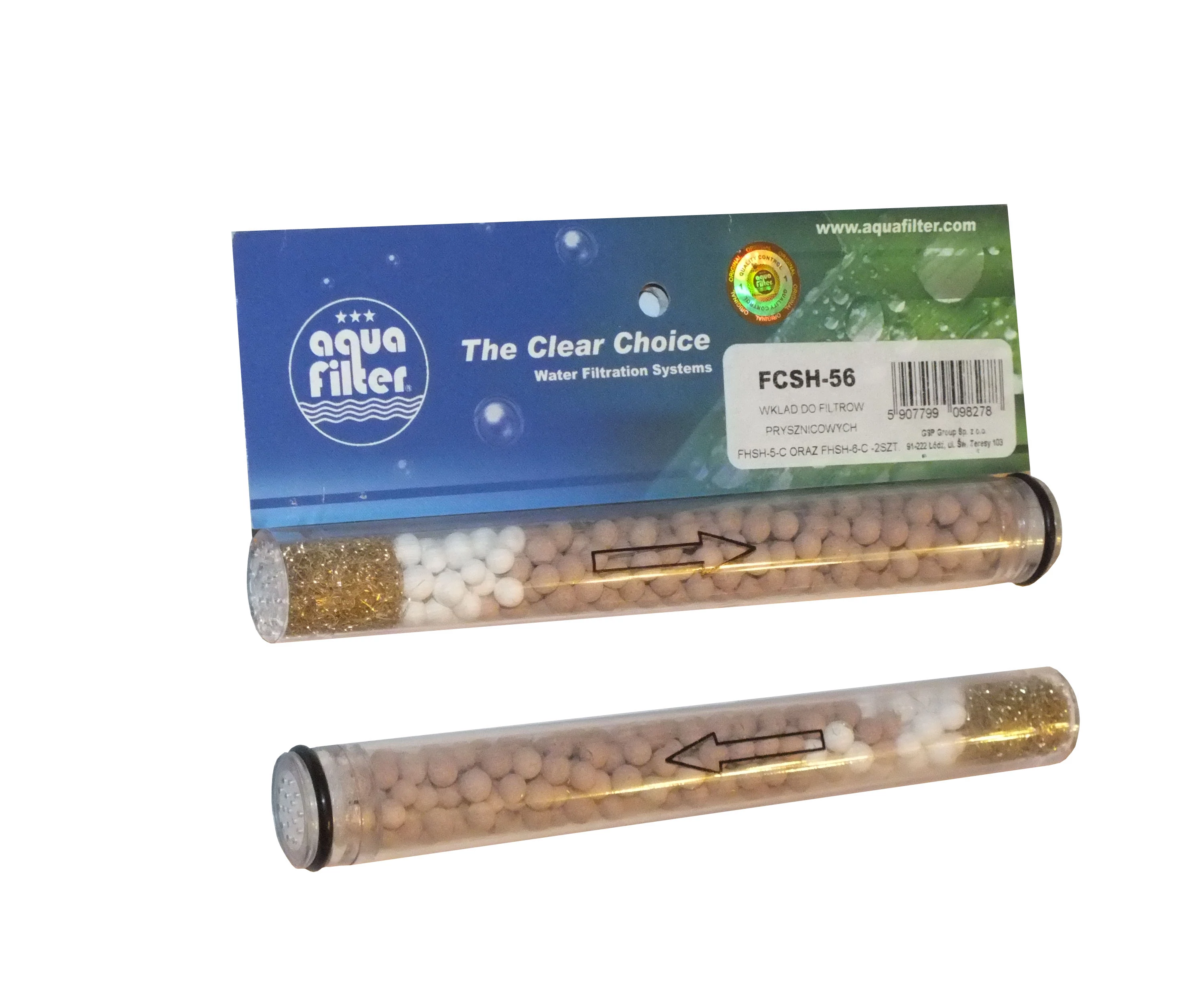 Az FCSH-56 zuhanyszűrő betét KDF töltetet tartalmaz (nagy tisztaságú réz-cink ötvözet, rétegelve vagy egyéb szűrőközeg granulátummal keverve, általában arany vagy réz színben) mely eltávolítja a klór akár 99%-át, hidrogén-szulfidot, egyes növényvédő szereket, csökkenti a nehézfém koncentrációt (ólom, arzén, higany, kadmium), továbbá megakadályozza a baktériumok felszaporodását.